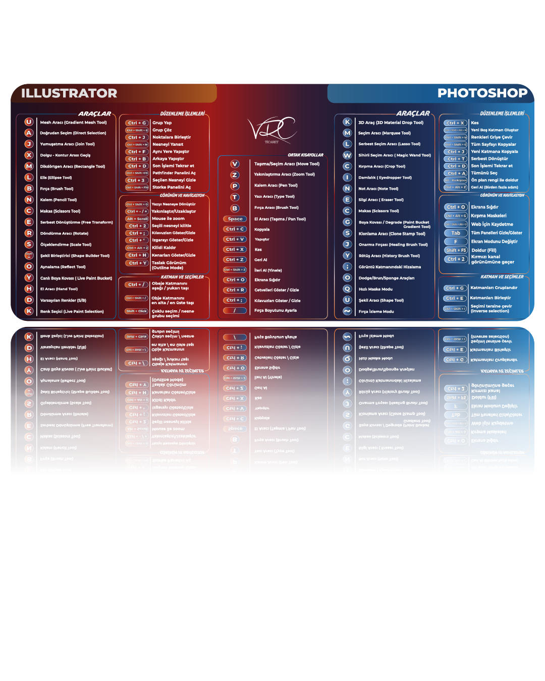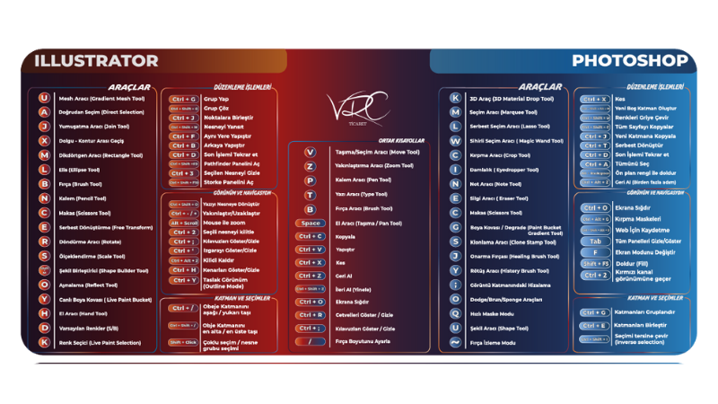 Illustrator & Photoshop Kısayol Mousepad 80x40cm