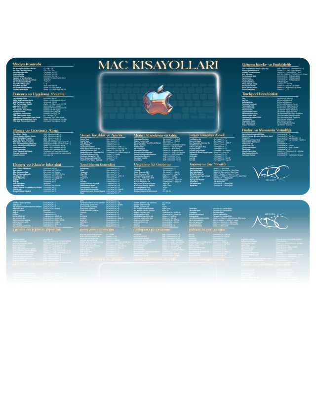 Excel Kısayol Mousepad 80x40cm Kaymaz Kauçuk Taban (Türkçe Excel)