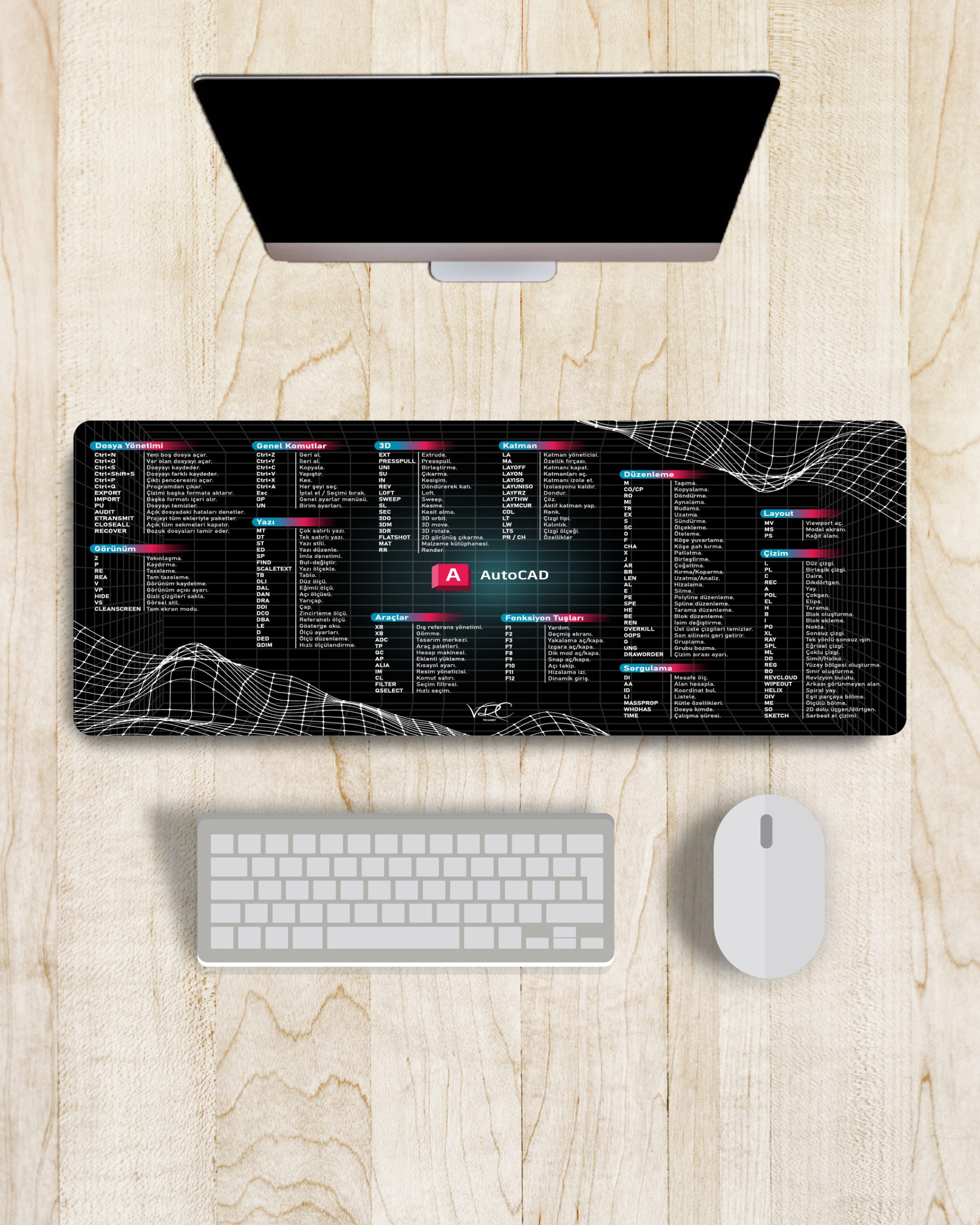 AutoCAD Mousepad 80x40Cm Kaymaz Kauçuk Taban